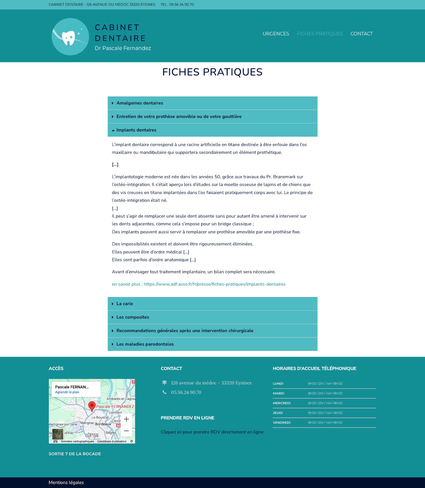 Réalisation du site internet pour un cabinet dentaire près de Bordeaux